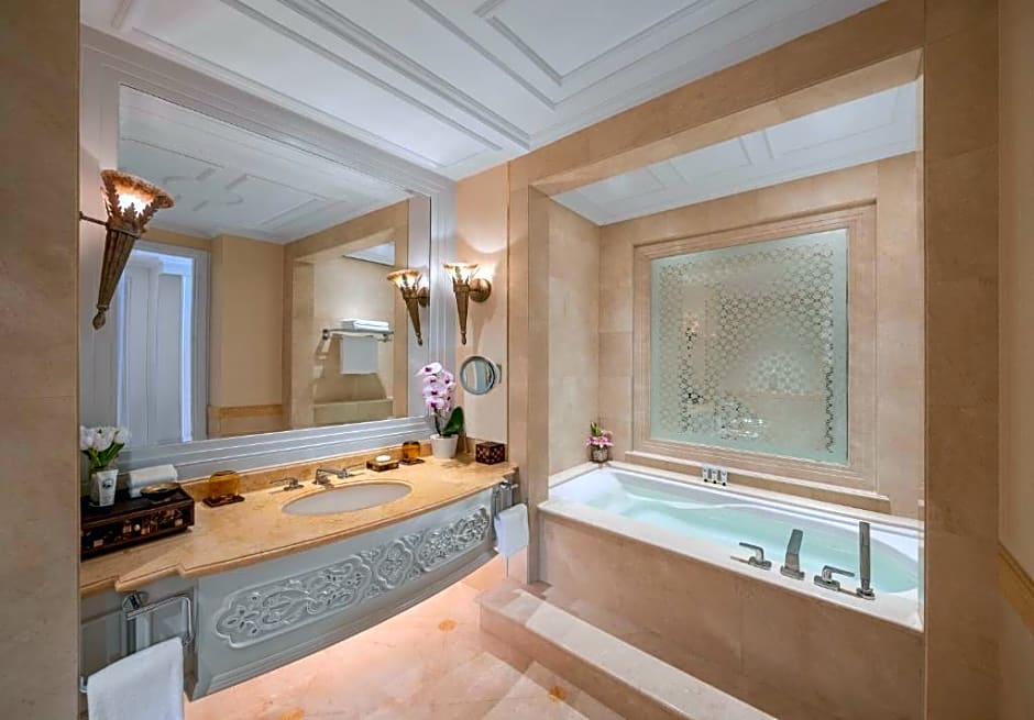 Avec 1 224 avis élogieux, l'Emirates Palace est réputé pour son service sensationnel et ses équipements exceptionnels. Régalez-vous au restaurant sur place, profitez d'un petit-déjeuner offert ou promenez-vous dans le superbe jardin. Et si vous vous sentez en forme, testez le centre de fitness ou défiez un ami sur le court de tennis. Créer des souvenirs dans ce complexe enchanteur vous laissera des histoires à raconter et des expériences à chérir bien après votre départ. Là où le luxe rencontre les loisirs, votre escapade parfaite vous attend !